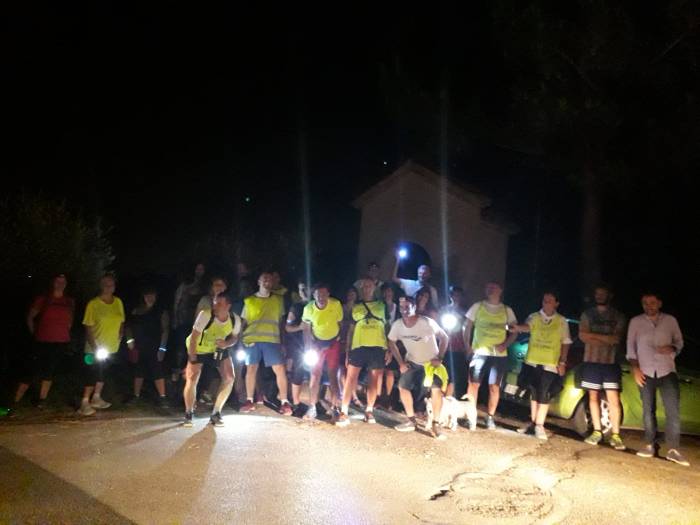 tanti camminatori e anche dei fulgidissimi bimbi hanno scelto la camminata notturna per raggiungere la torre.