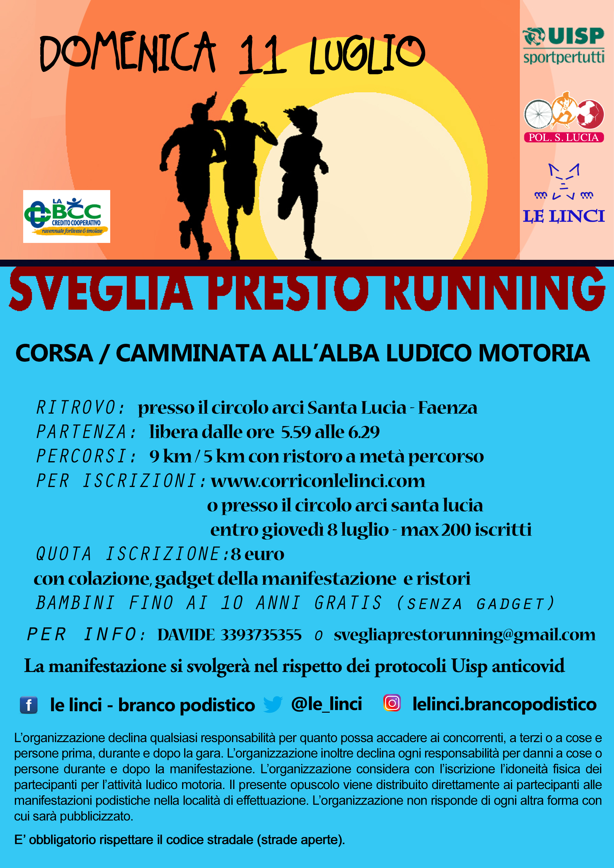 e per il giorno della manifestazione sarà necessario presentarsi con l’autodichiarazione Covid-19 già compilata e firmata,