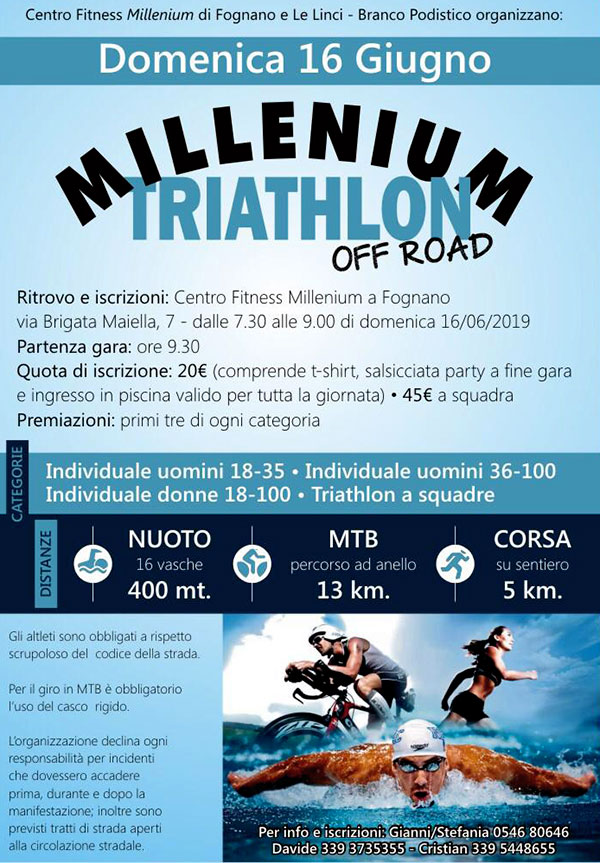 Anche quest’anno si collabora con il Centro Fitness Millennium per la il Triathlon di Fognano!